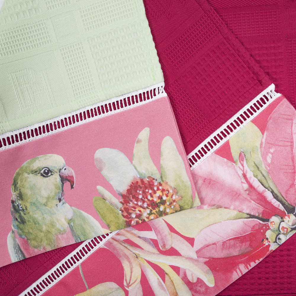 Набор кухонных полотенец имеет классическую прямоугольную форму и дополнены декоративной мережкой. Полотенца от BELLEHOME станут неотъемлемым элементом декора и превратят процесс сервировки стола в прекрасную традицию, наполнять пространство красотой и гармонией. Для удобства использования к изделиям пришиты петельки для удобного размещения на крючке.