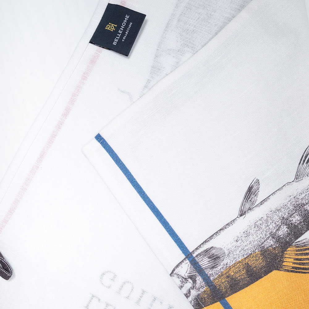 Комплект полотенец столовых Modern Fish — красивый и практичный элемент кухонного текстиля. Натуральная текстура переплетения нитей с эффектом естественной мятости полотна станет практичным дополнением для вашей кухни. Ткань из органического льна с добавлением хлопка высшего сорта прошла специальную обработку, после которой стала мягкой и приятной на ощупь.