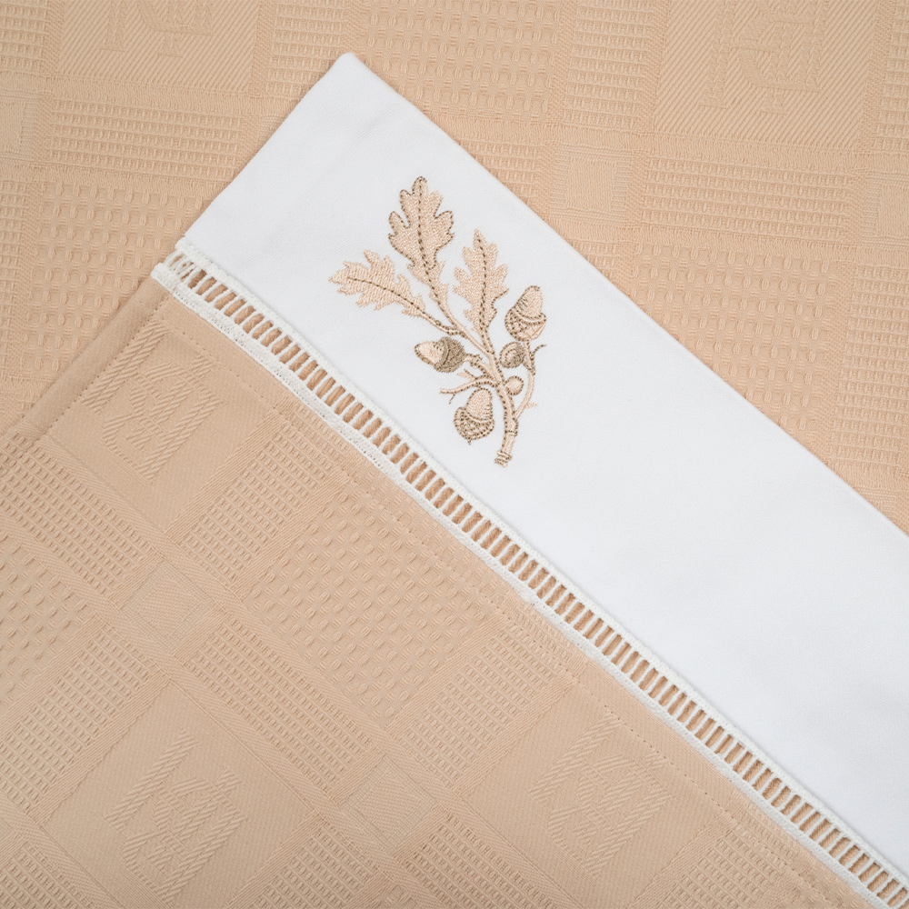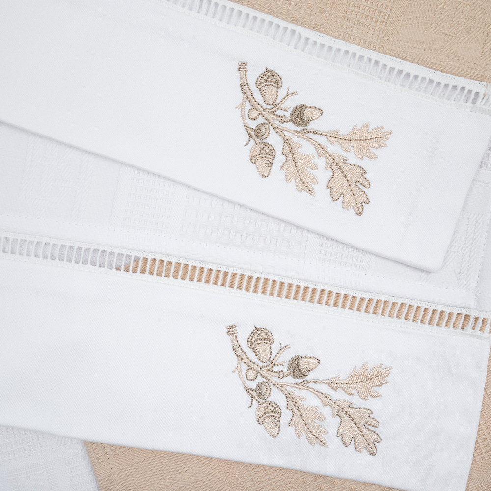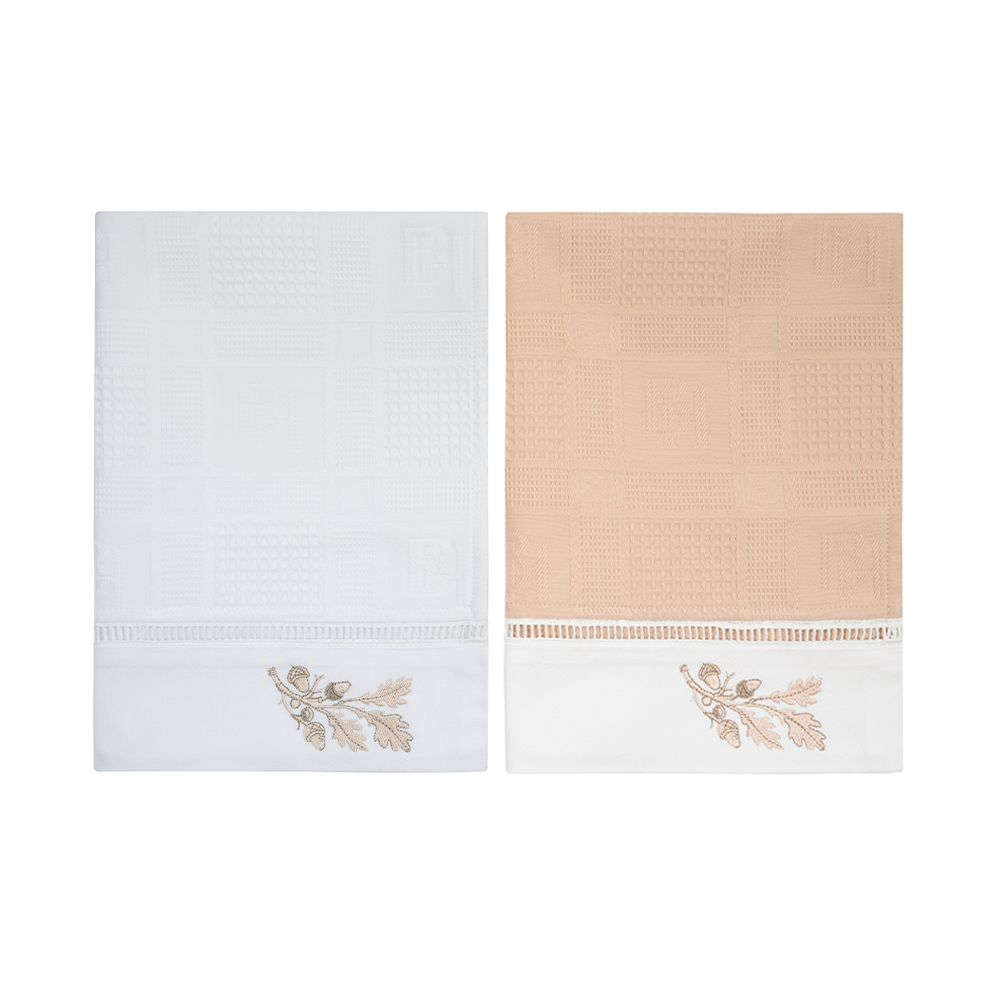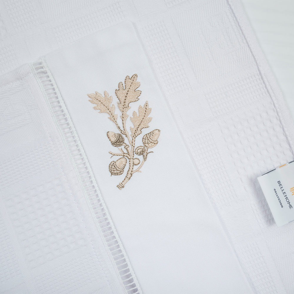 Вафельные полотенца для кухни с вышивкой «Oaks» — красивый и практичный элемент столового текстиля. Объемная фактура в виде квадратных ячеек позволяет ткани легко и быстро впитывать влагу. Изготовлены из 100% хлопка, мягкие и приятные на ощупь. Благодаря высокой плотности, устойчивы к изнашиванию и могут активно использоваться в быту.