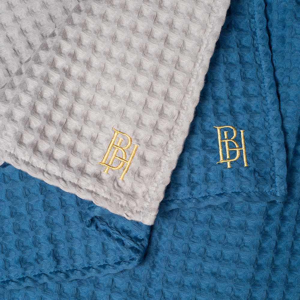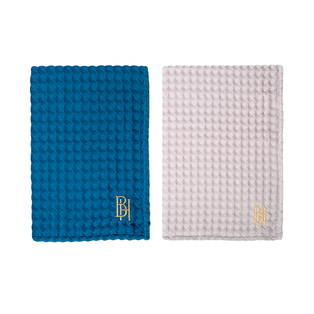 Комплект «Honey Mountain» выполнен из высококачественного хлопка синего и серого цвета. Каждое полотенце украшает лаконичная фирменная вышивка в виде букв «BH». Вафельные полотенца BELLEHOME — это практичность, комфорт и уют!