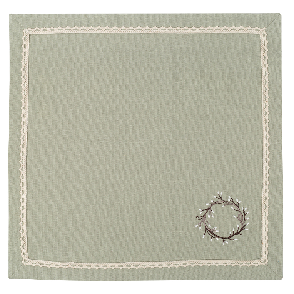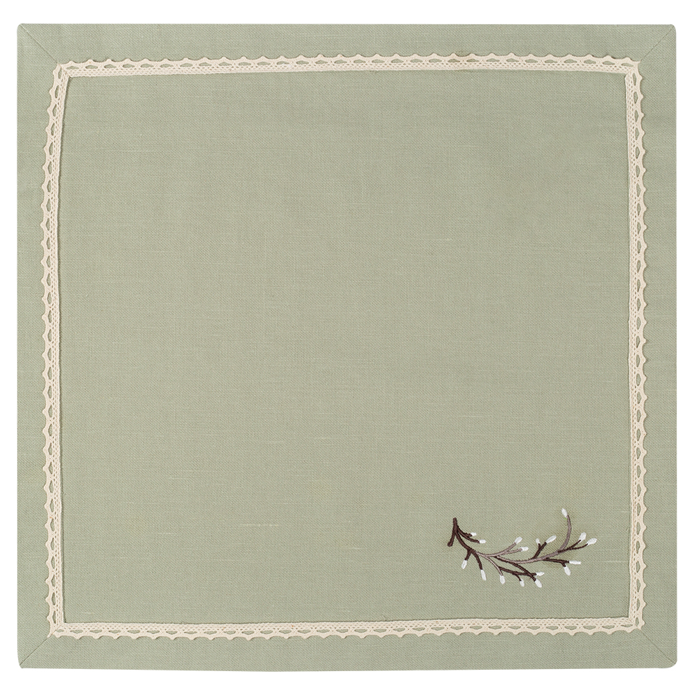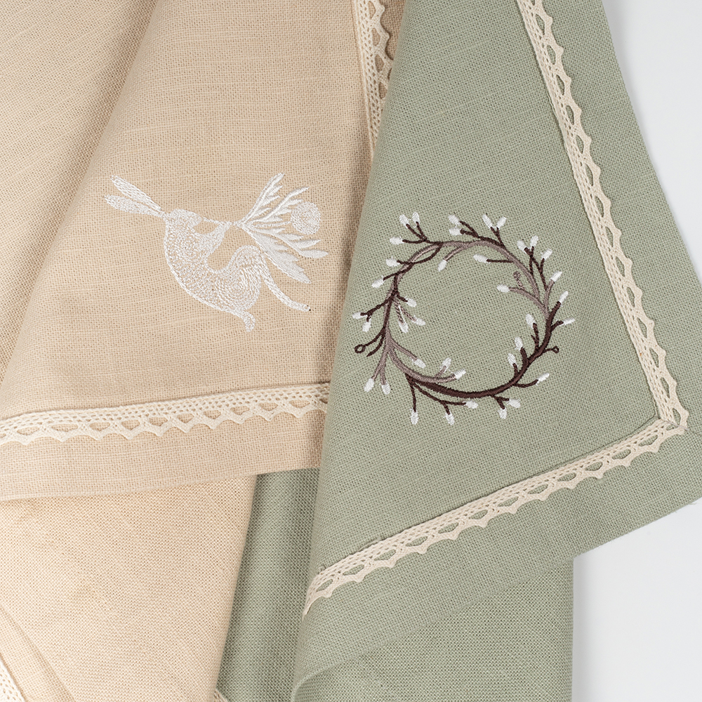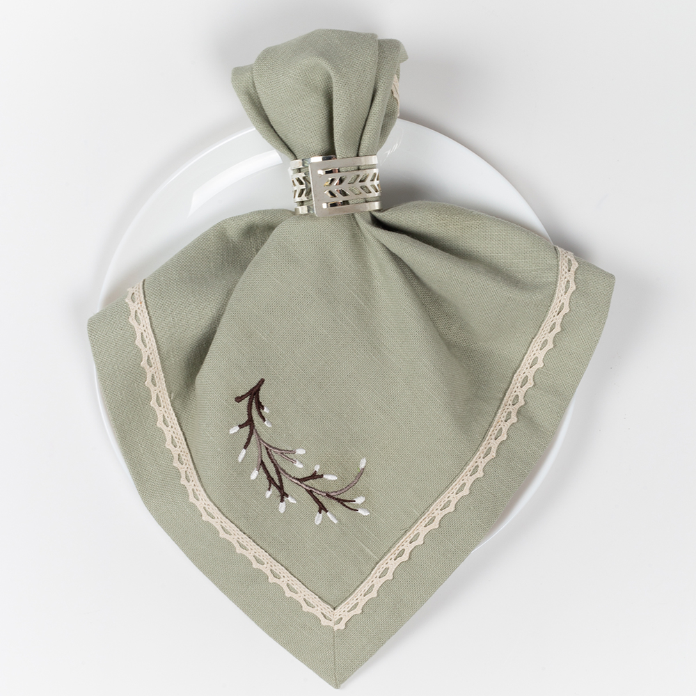 В комплект входит 4 салфетки размером 40х40 см в песочном и нежно-зеленом цвете.