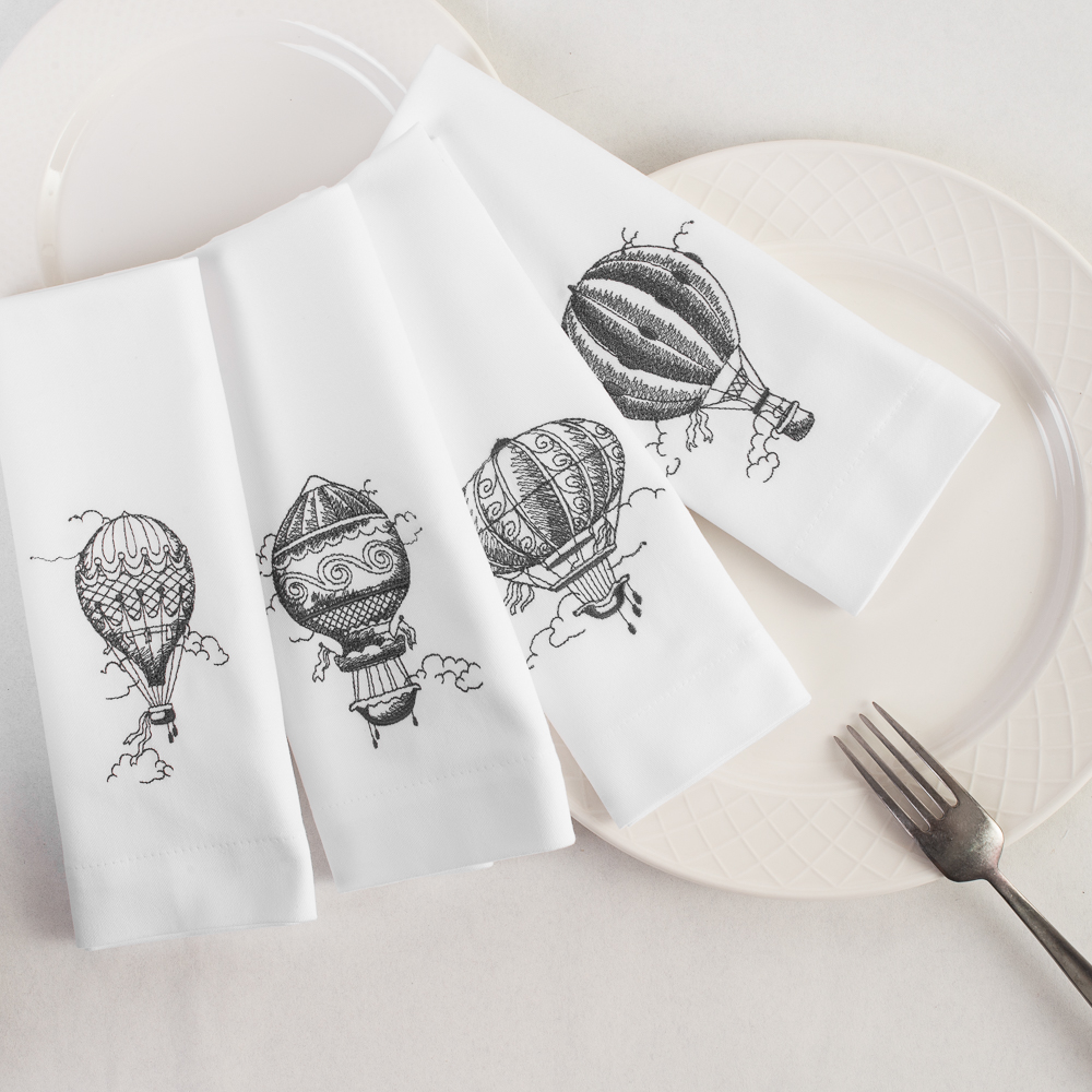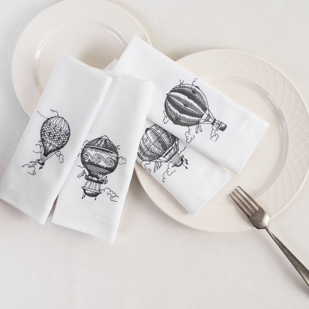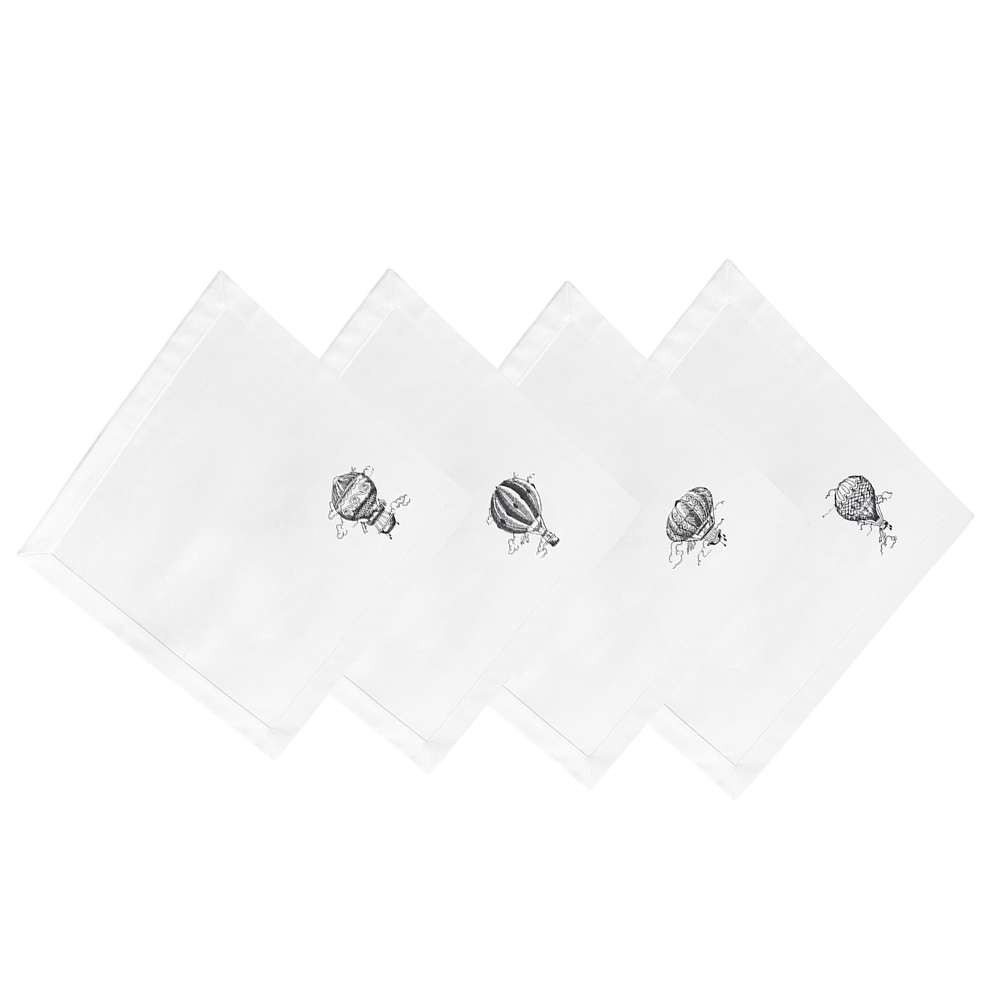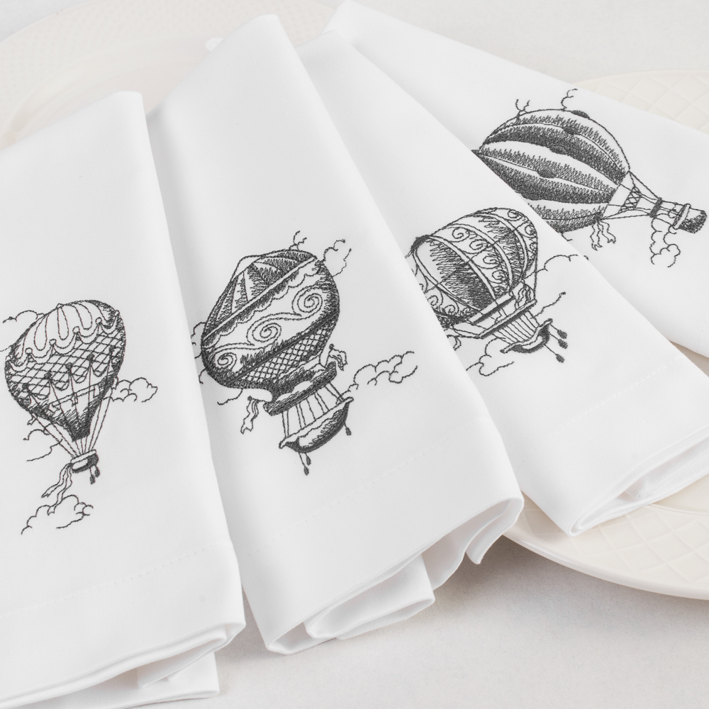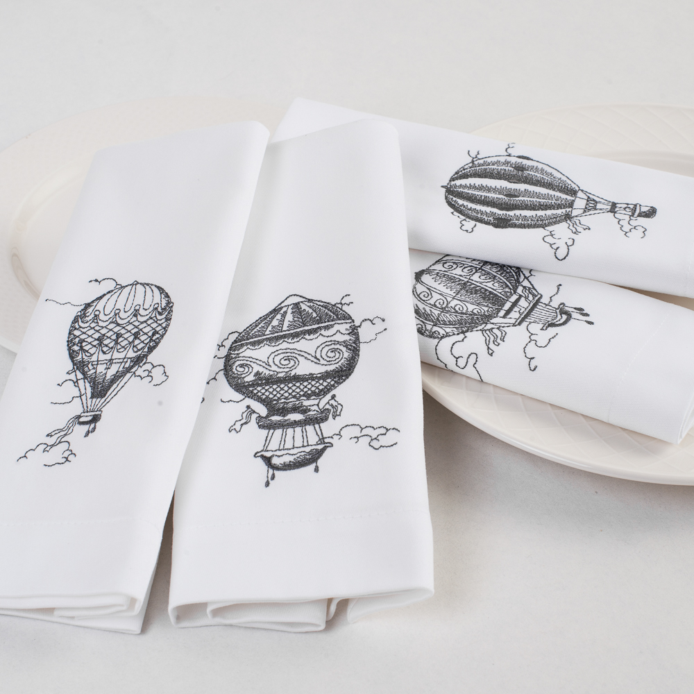 Изготовлены из 100% хлопка, размера 45х45 см, в комплекте 4 шт. Детали: оформлены эксклюзивной аппликационной вышивкой в виде воздушных шаров на высокоточном оборудовании в России.