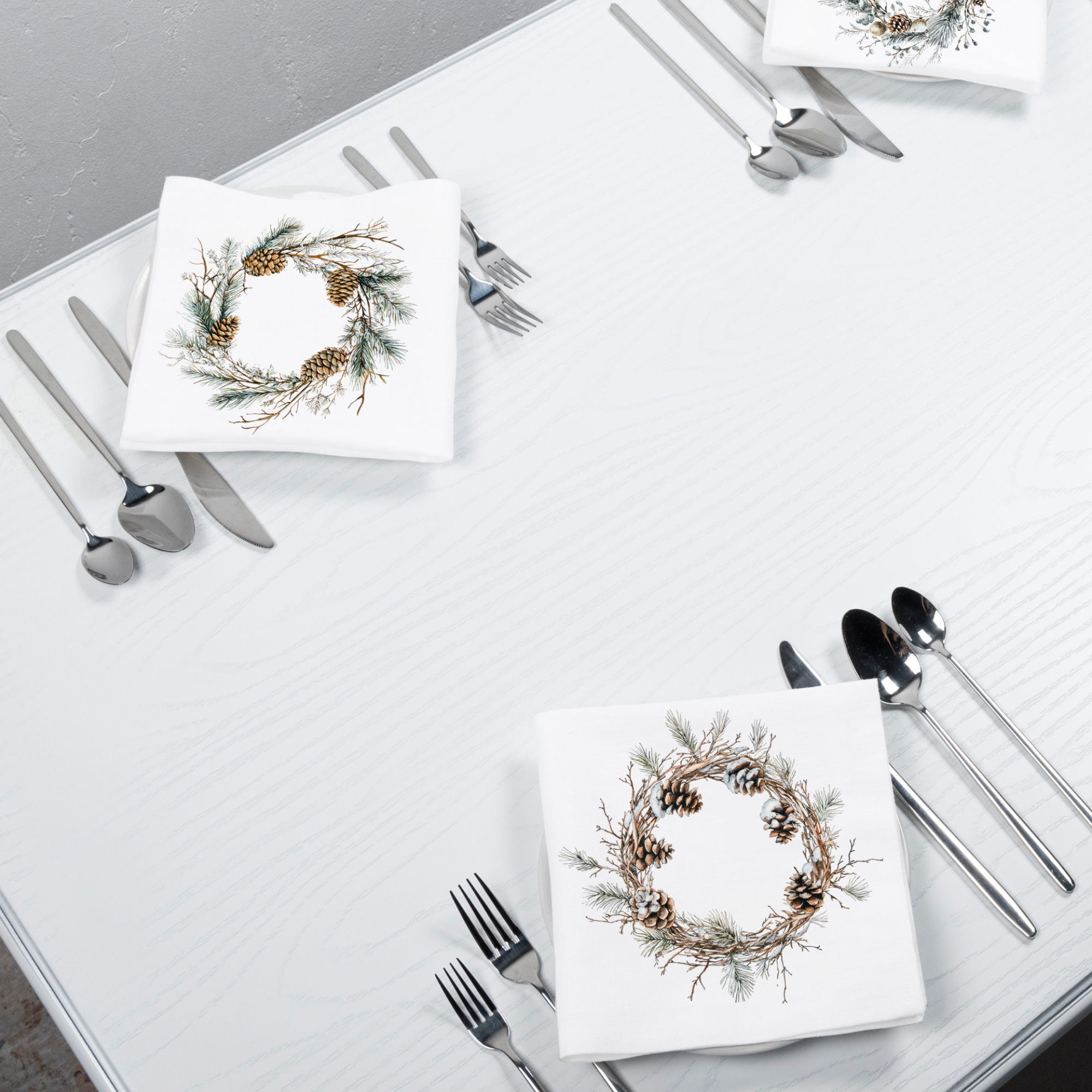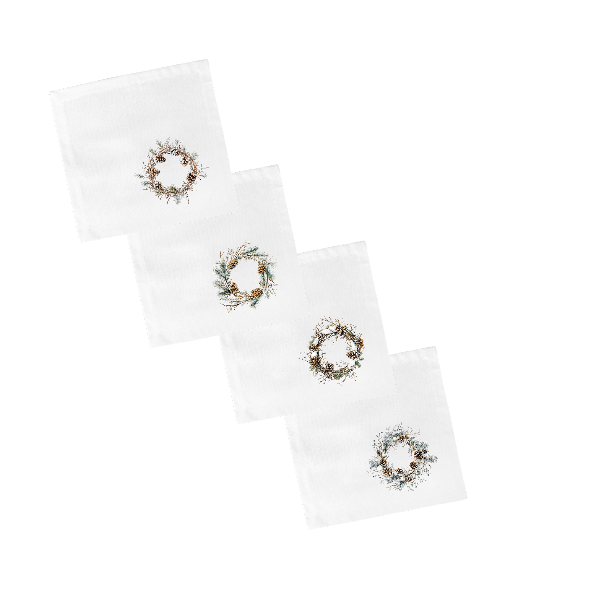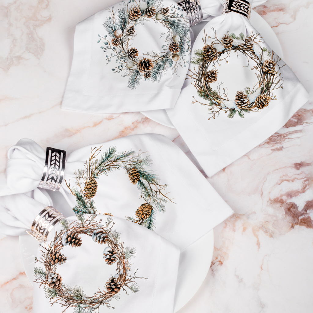 Стойкие красители, используемые при производстве ткани, позволяют активно использовать салфетки и сохранить в прекрасном состоянии надолго. Регулярный уход допускает стирку при температуре 40° без использования агрессивных моющих средств. Набор салфеток из серии «Зимний двор» имеет классическую квадратную форму.