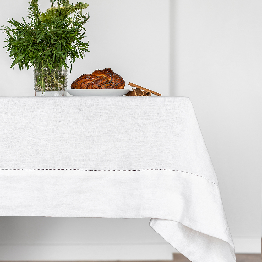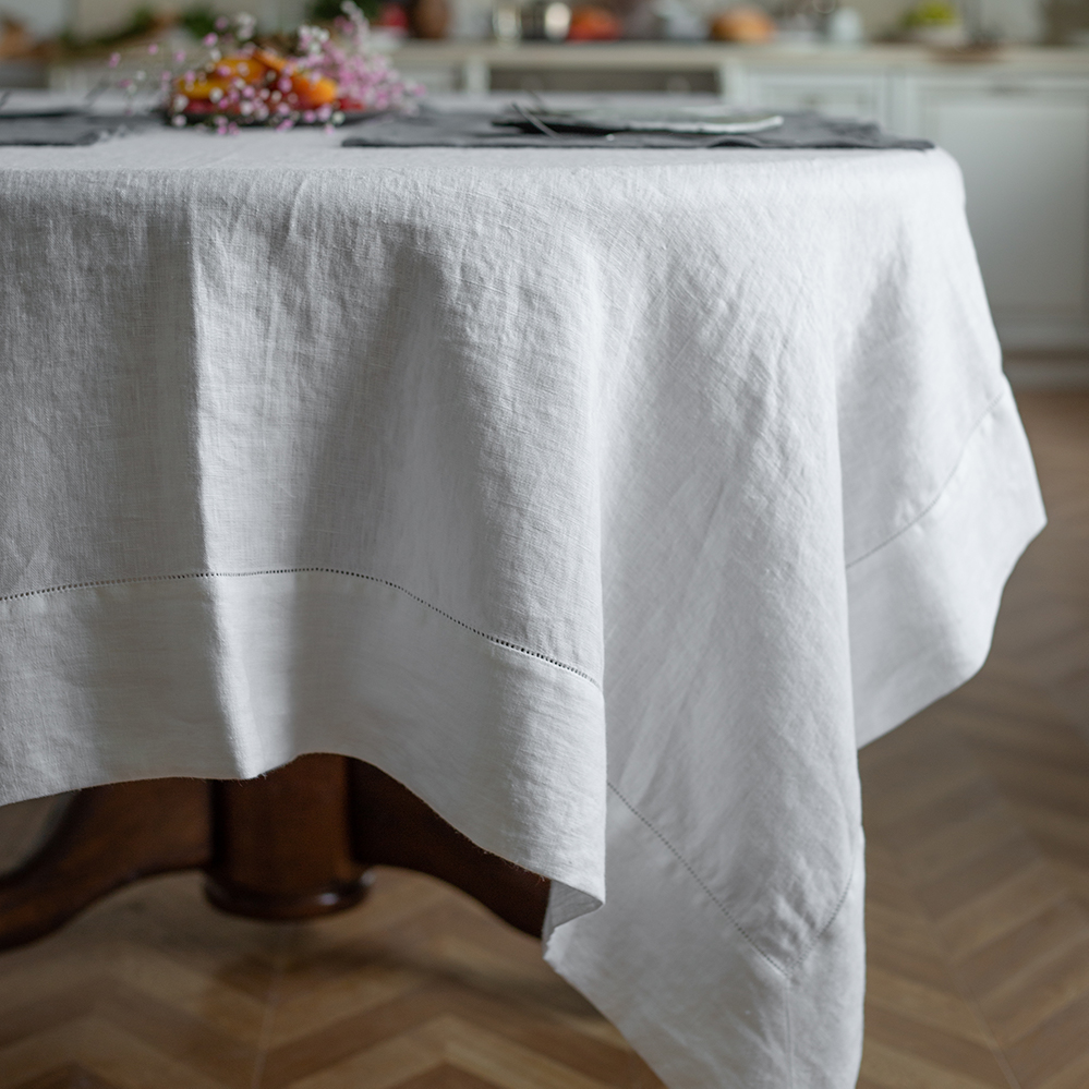 Скатерть столовая Ilin/cotton Blanka, имеет классическую прямоугольную форму, по бордюру украшена лаконичной мережкой.