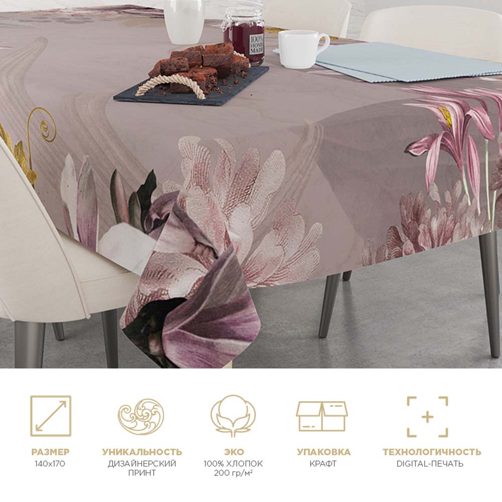 Размер Скатерти: 140х170 см. Упакована в стильную, экологичную крафтовую упаковку и брендированный пергамент.