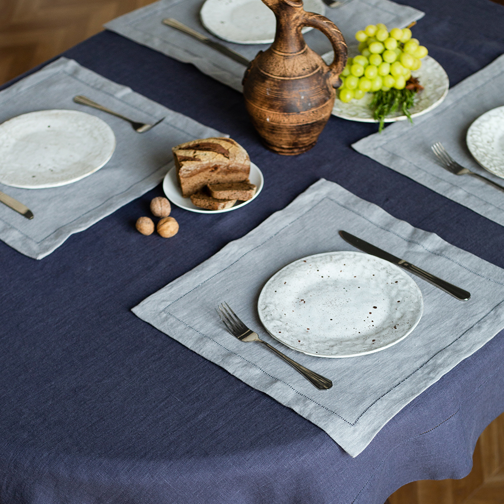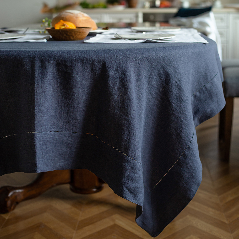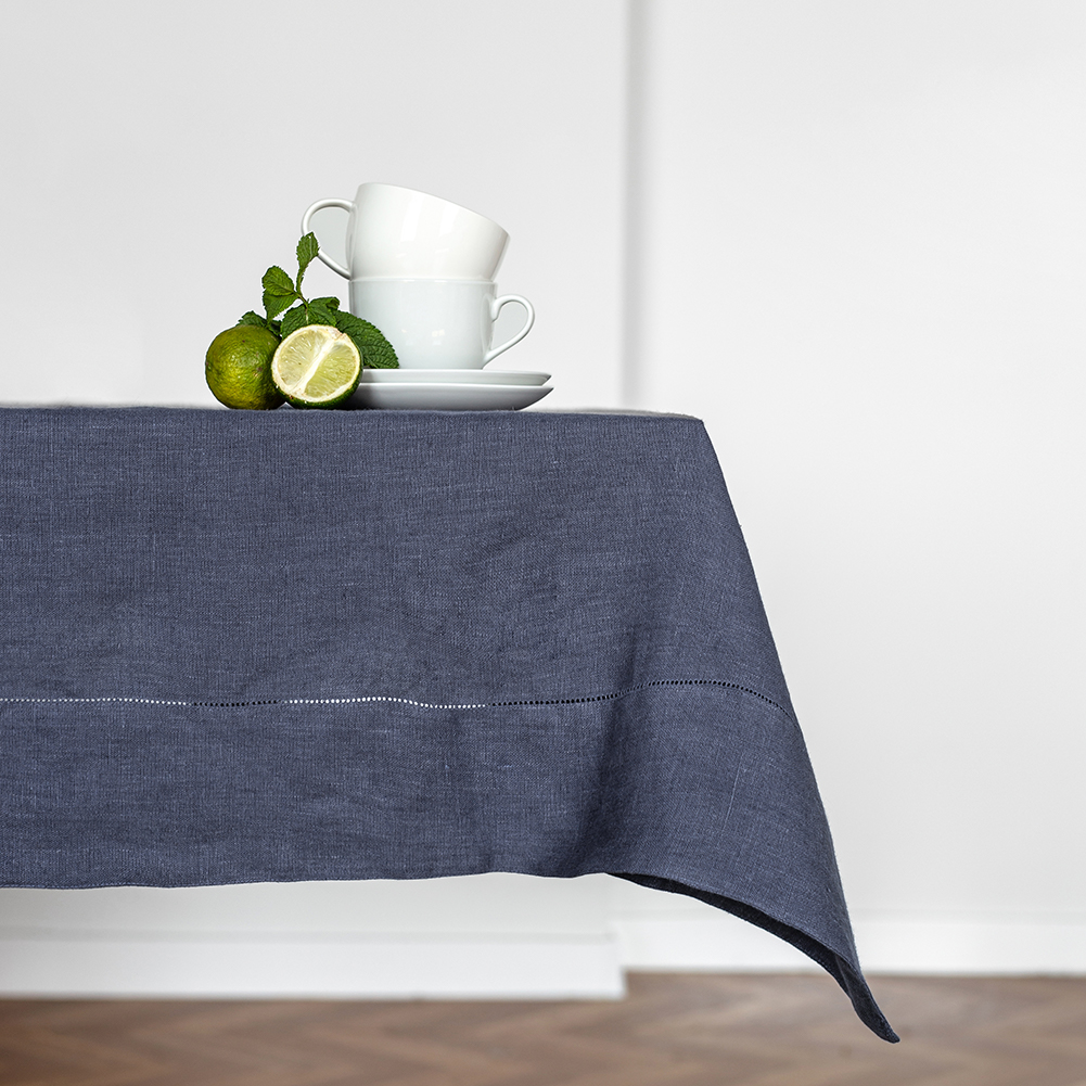Скатерть столовая Ilin/cotton Dark Grey, имеет классическую прямоугольную форму, по бордюру украшена лаконичной мережкой.